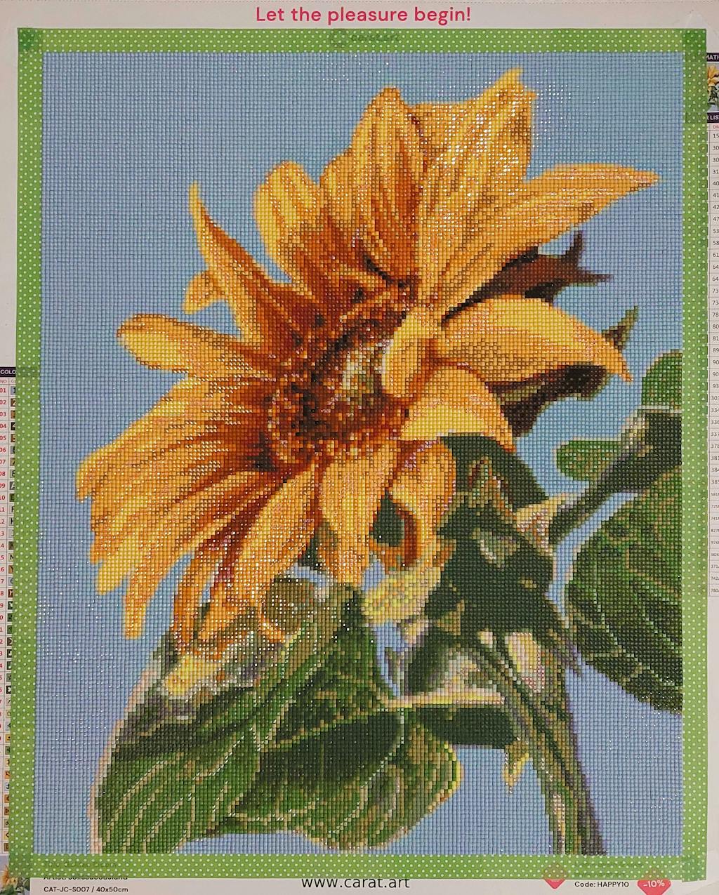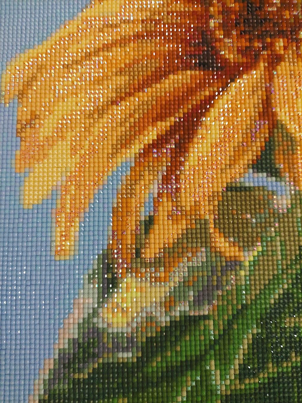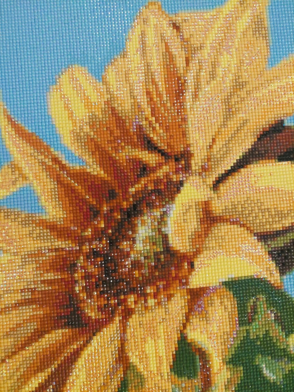 Avec ce set Diamond Painting Tournesols, tu peux créer de tes propres mains une décoration fantastique pour ta maison. Passe des moments de détente en pratiquant l'art-thérapie et assiste à la création de ta propre œuvre d'art Diamant Painting à partir de milliers de petites diamant scintillantes. Ton tableau en diamant prend vie et tu peux déjà voir, en plaçant les petits diamants, comment de nouveaux points forts scintillants apparaissent en fonction de l'incidence de la lumière, ce qui ne manquera pas de t'enthousiasmer.